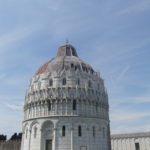 洗礼堂の中は、思いの外、コンパクトです。 壁は、白の大理石で 横方向に、規則的に、黒い縞模様が入っています。 2階部分と天...